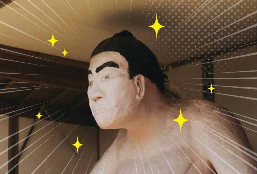 両手を広げ四股を踏んだ、大きな力士像が印象的!